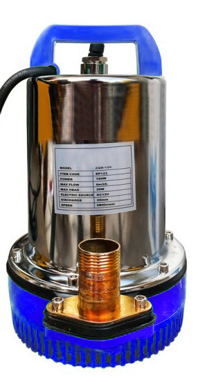 ساخت کشور چین و با کیفیت بالا جهت مصارف سبک مانند آب نما,استخر,اب انبار,چاه و … استفاده می شود.این پمپ با برق 12 ولت (برق باطری خودرو ها) کار می کند.این پمپ ها می توانند از عمق 5 متری مکش کرده و تا 10 متر مسیر انتقال انجام دهد.در واقع به علت نیروی خوب موتور این پمپ ها، به راحتی می توان انتقال را انجام داد.