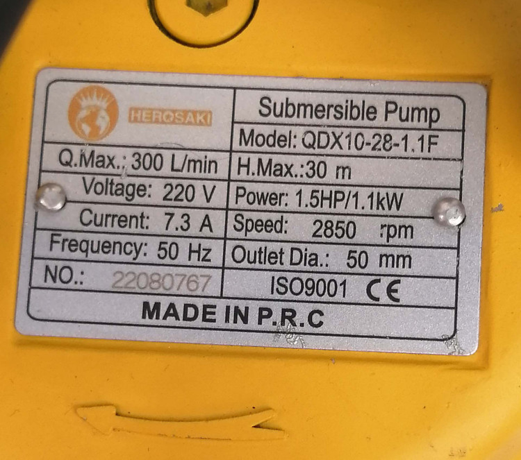 ویژگی های پمپ کفکش 30 متری 2 اینچ هیروساکی مدل QDX10-28-1.1F