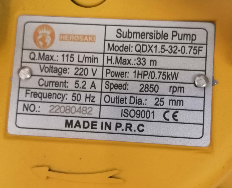 کفکش 32 متری 1 اینچ هیروساکی مدل QDX1.5-32-0.75 مناسب چاه های اب صاف و متراژ 12 الی 30 متر میباشد.