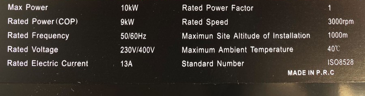 مشخصات فنی موتوربرق راتو 10 کیلووات مدل RATO R16500DWHB (تکفاز و سه فاز)